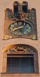 Hoch an der Fassade fallen weitere Details auf: Ein im Sinne des Jugendstils modernisiertes und