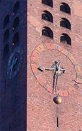 Sonne, Mond und Sterne: sogar den Wochentag zeigt Bestelmeyers Uhr an Die aufwändigen Uhrwerke, die sich an den Bestelmeyer’schen Bauten finden (zum