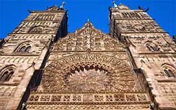 | Die Kirche St. Lorenz ist der größte und zugleich bedeutendste Sakralbau in Nürnberg. An Stelle romanischer Vorgängerbauten entstand sie in drei Bauphasen. Wohl ab der 2. Hälfte des 13. Jahrhunderts wurde zunächst eine hochgotische Basilika errichtet. ![]() |