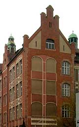 | Georg Kuch entwarf in Nürnberg etliche Schulbauten. Im Sinne des Jugendstil gestaltet sind darunter zum Beispiel das Schulhaus an der Bismarckstraße und das früh entstandene Schulhaus an der Schnieglinger Straße (Abb.). Die aufwendige Ausführung mit Ornamenten in Sgraffito-Technik läßt auf einen gesteigerten Repräsentationsanspruch schließen. Bildungsbauten hatten im Kaiserreich nicht nur ihrem eigentlichen Zweck zu dienen. Sie dienten auch der Darstellung des Anspruches, den man an die Schüler und die Schule stellte.